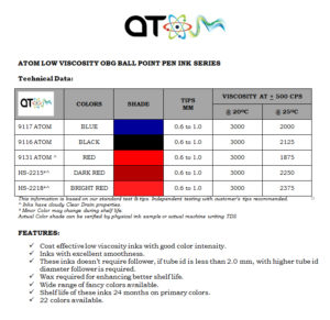 1.ATOM LOW VISCOSITY OBG BALL POINT PEN INK SERIES