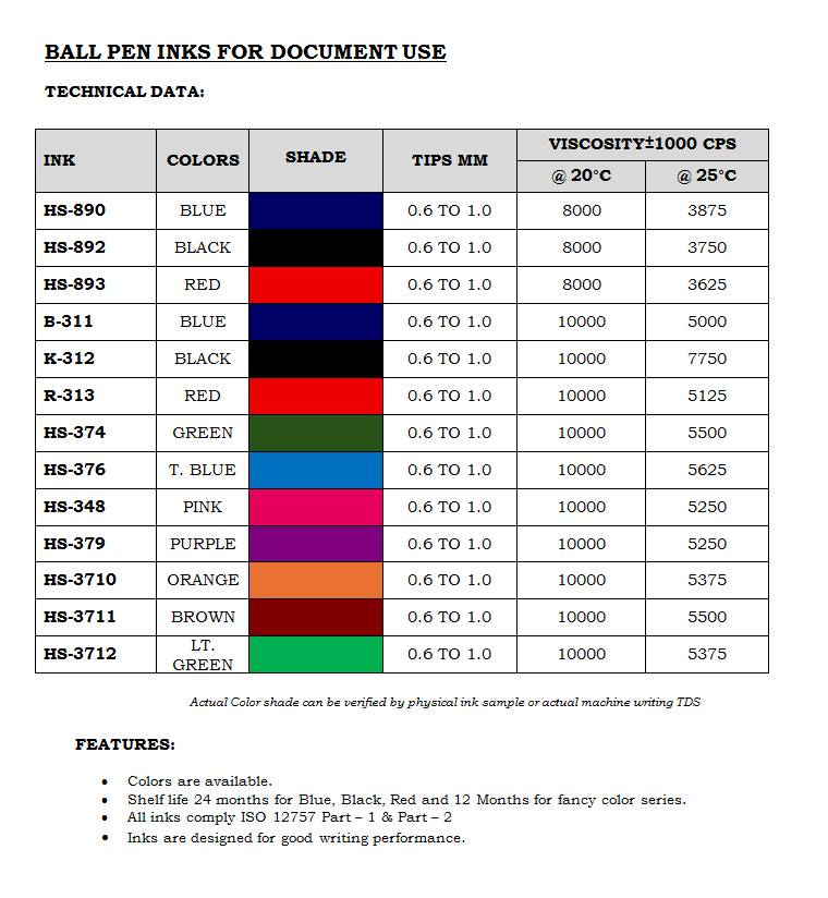 Welcome Hishineinks  >  Ball Pen Inks for Document Use