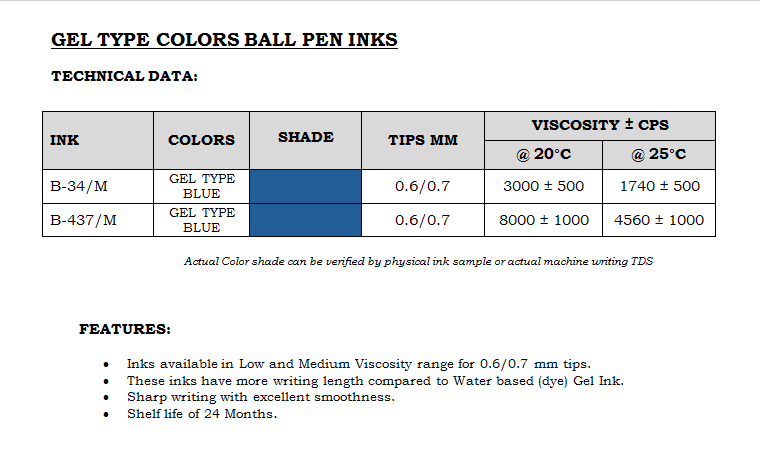 FAST DRY GEL ALL COLOR INKS (DYE BASED)