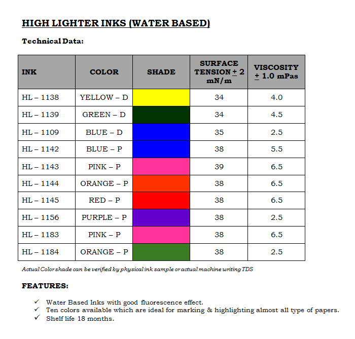 Welcome Hishineinks  >  HIGH LIGHTER INKS (WATER BASED)