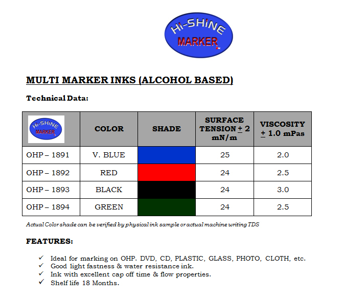 PERMANENT MARKER INKS (FANCY COLORS – ALCOHOL BASED)
