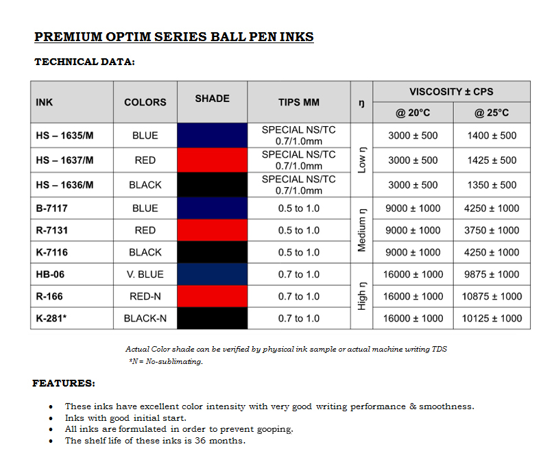 ULTRA LOW VISCOSITY BALL PEN INKS HI-FLO SERIES