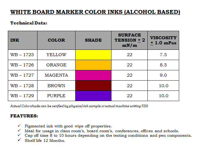 • WHITE BOARD MARKER COLOUR INKS (ALCOHOL BASED)