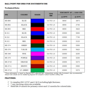 6.BALL POINT PEN INKS FOR DOCUMENTS USE